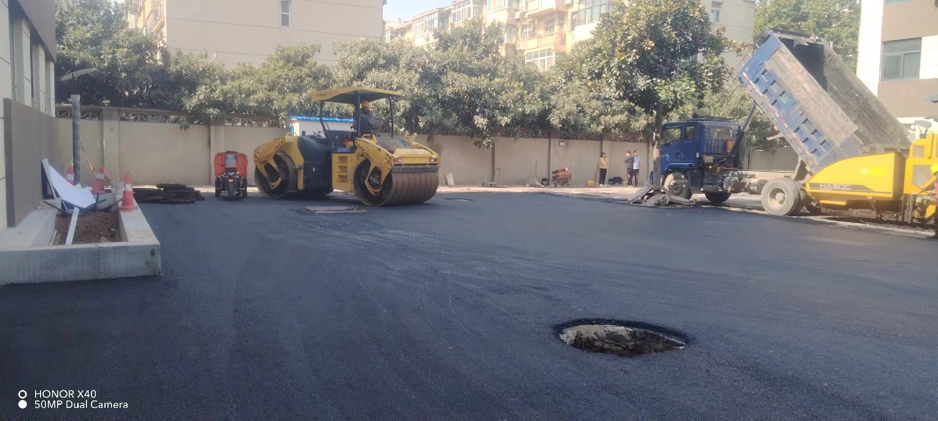 如果半幅施工無法采用熱接縫,則會(huì)采用人工順直刨縫或切縫的方法。在鋪另半幅前,必須確保邊緣清掃干凈,并涂灑少量粘層瀝青。攤鋪時(shí),應(yīng)重疊在已鋪層上一定寬度(如5~10cm),攤鋪后將混料人工清走。碾壓時(shí),先在已壓實(shí)路面行走,然后壓實(shí)新鋪部分,再伸過已壓實(shí)路面一定寬度(如10~15cm),以確保接縫處被充分壓實(shí)緊密?。-鄭州瀝青攪拌站