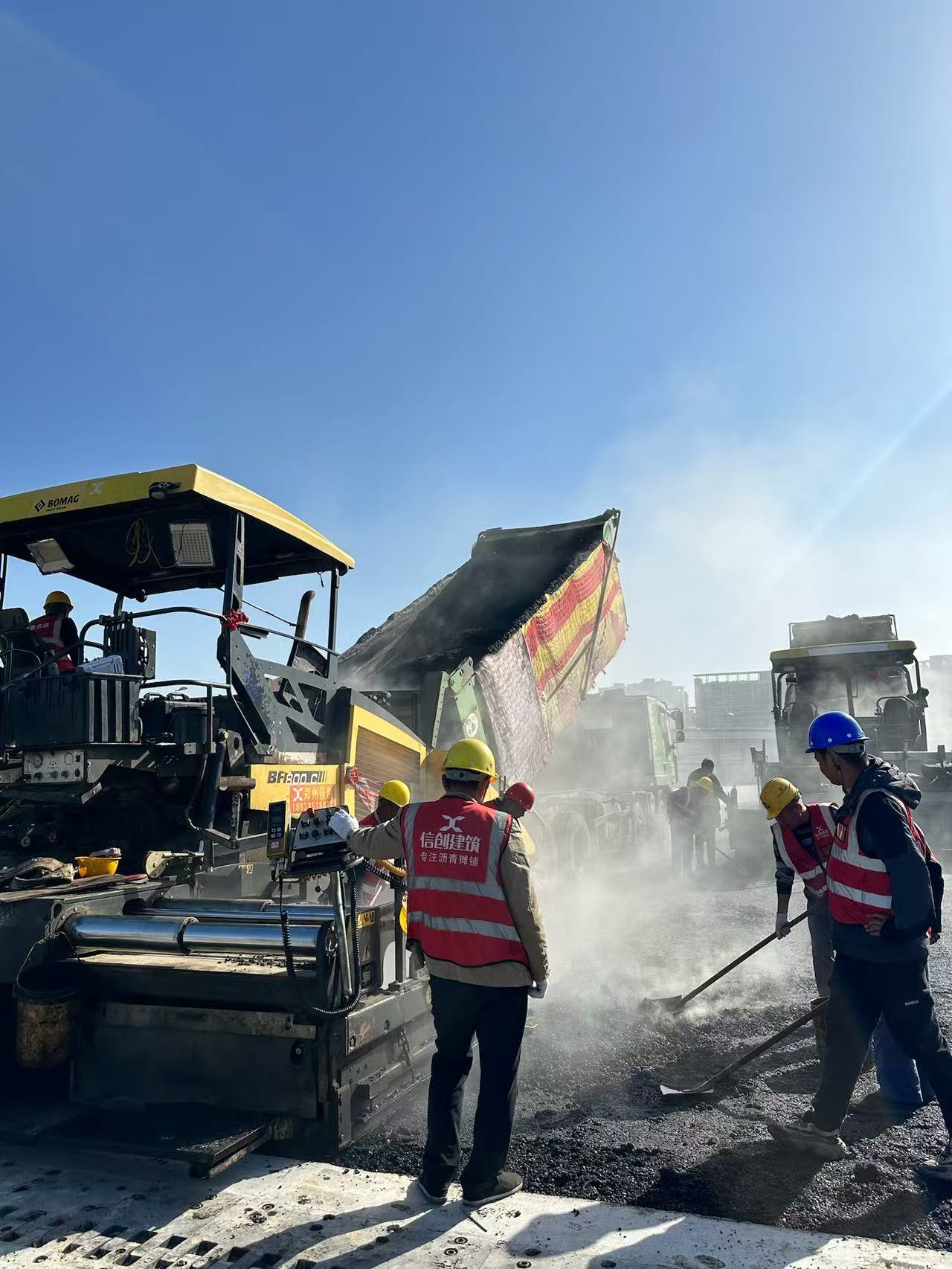 裝料過程需規(guī)范操作。裝料前,應(yīng)將車廂清理干凈,并涂刷一薄層隔離劑(如油水混合物),防止混合料與車廂黏結(jié)。裝料時(shí),要按照前、后、中的順序分三次裝料,以減少混合料的離析現(xiàn)象。同時(shí),控制好裝料高度,避免因過高導(dǎo)致混合料在運(yùn)輸過程中產(chǎn)生離析。裝料后,應(yīng)及時(shí)覆蓋保溫、防雨布,確?;旌狭系臏囟群唾|(zhì)量。——鄭州瀝青路面施工生產(chǎn)廠家